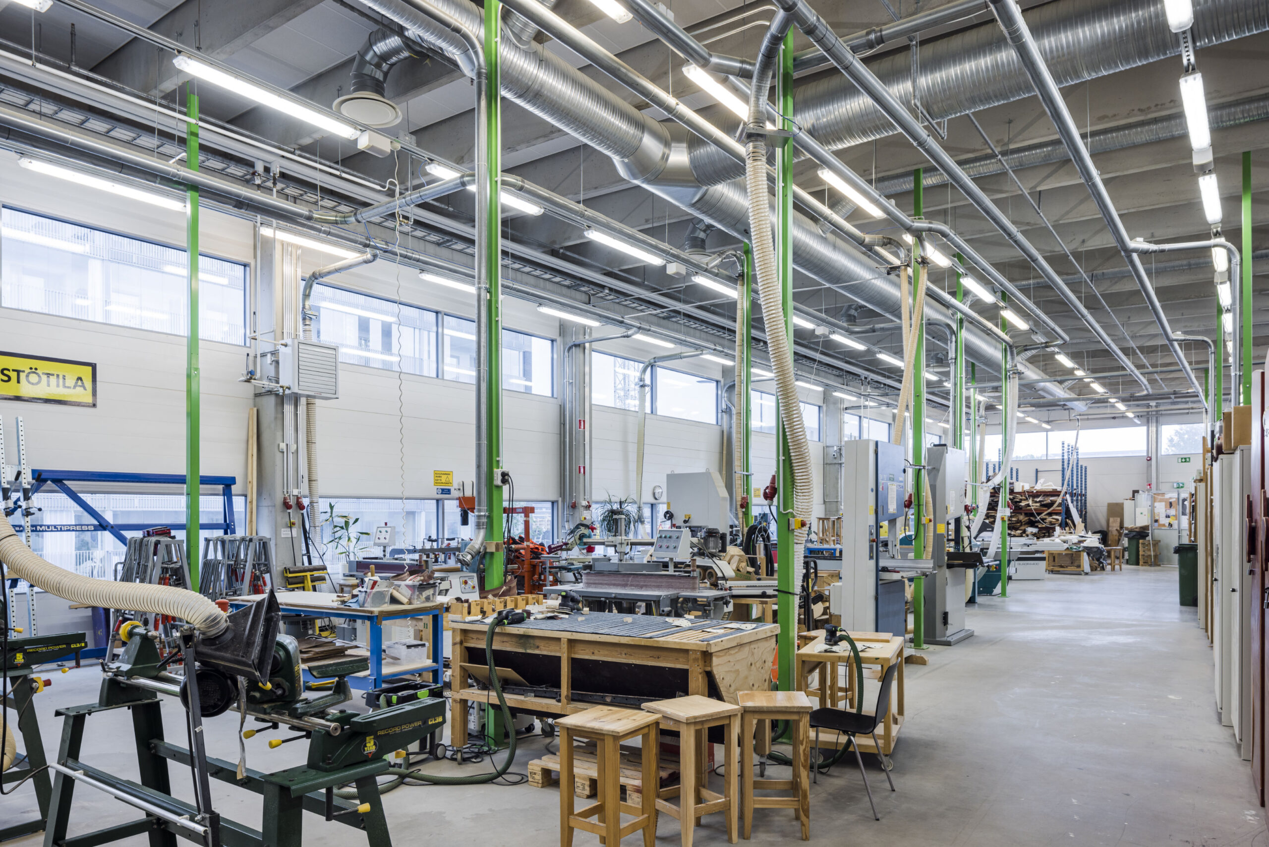 Rakennus on alun perin valmistunut vuonna 1967, ja siihen tehtiin laajennus vuonna 2011. Tiloihin kuuluu koulutus- ja luentohuoneita, ravintolatilaa sekä koulutushallitiloja puutyölle ja metalli- ja korupajoille. Rakennus on jaettavissa erilaisiin käyttötarkoituksiin, ja siinä on myös erillinen toimistosiipi.