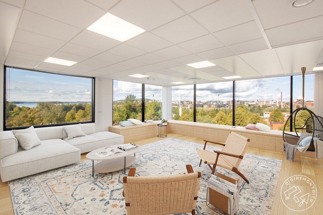 Rakennus on tyylikäs ja hyväkuntoinen, jossa ei tarvitse pelätä isoja peruskorjauksia. Kerrosten isoista ikkunoista avautuu poikkeuksellisen upeat näkymät Tampereen kaupunkiin sekä Pyhäjärvelle. Maisemat ovat yhdistelmä rauhoittavaa luontoa, järvinäkymiä ja kaupungin kerroksellista siluettia. Ylimmistä kerroksista löytyy upeita tiloja, joista on mahdollisuus rakentaa asiakkaan tarpeita vastaavat tilat. Kiinteistölle on myönnetty LEED Gold -sertifikaatti.