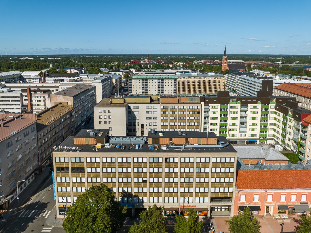 Sijainti ydinkeskustassa tarkoittaa sitä, että kaikki on vieressä. Työpaikalta on helppo lähteä lounaalle alakerran pitseriaan tai saman korttelin ravintoloihin ja kahviloihin. Myös kuntosali, päivittäistavarakauppa, apteekki ja muut olennaisuudet löytyvät samasta talosta. Kauppatorikin on kulman takana.
