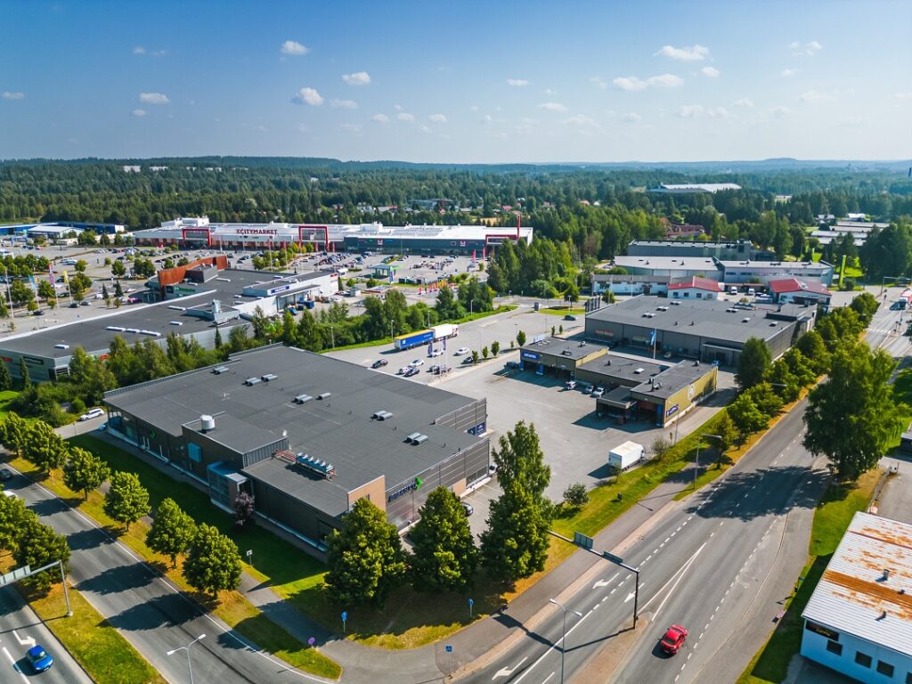 Kahden modernin kauppakiinteistön kompleksi sijaitsee hyvällä paikalla Hämeenlinnan Tiiriön alueella.