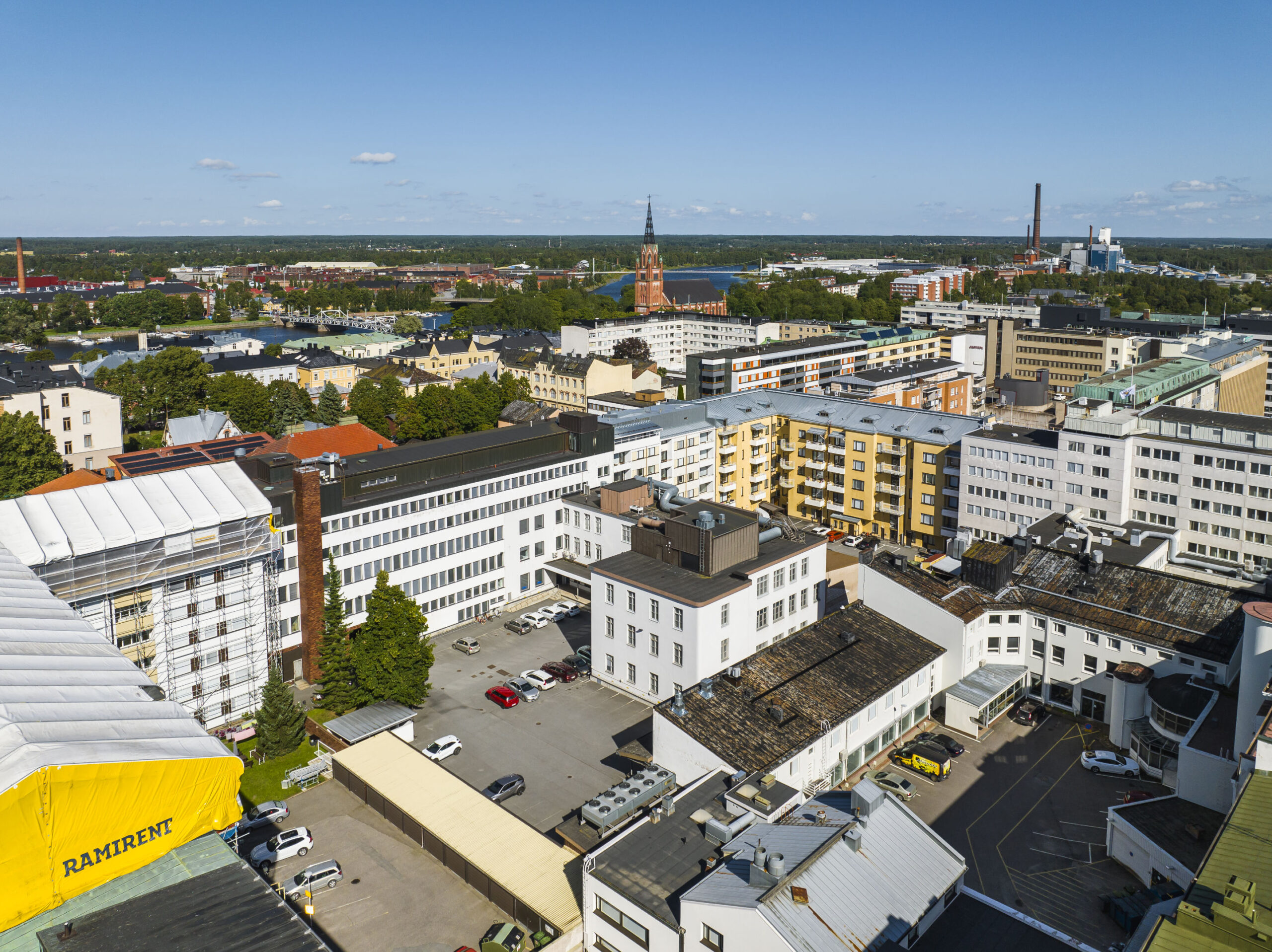 Kaikki keskustan palvelut ovat lähellä ravintoloineen ja shoppailumahdollisuuksineen. Lounastauolla voi käydä happihyppelyllä vastapäisessä historiallisessa Raatihuoneenpuistossa, jonka laidalla komeilee 1800-luvulla rakennettu Carl Ludvig Engelin suunnittelema Porin Raatihuone. Muutaman minuutin kävelymatkan päässä sijaitseva Porin keskuspuisto, Kirjurinluoto, tarjoaa myös ihanteellisen virkistyspaikan työpäivän lomassa. Parhaiten Kirjurinluoto tunnetaan Pori Jazz -festivaalistaan.