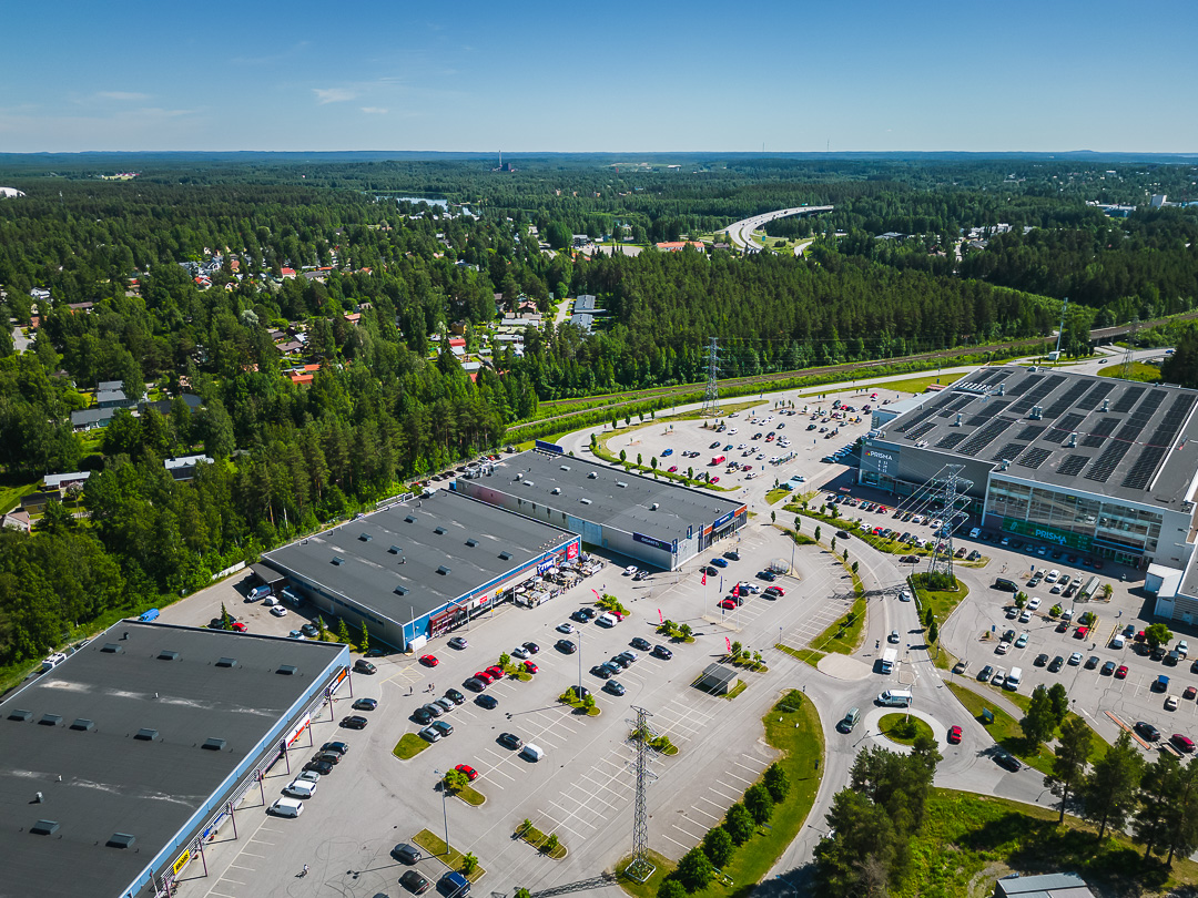 Sijainti sekä 6- että 9-tien kupeessa on erinomainen. Selkeät ja hyvin ylläpidetyt pysäköintialueet lisäävät kohteen houkuttelevuutta ja tekevät asioimisesta asiakkaille mutkatonta. Lähin paikallisliikenteen pysäkki löytyy muutaman sadan metrin päästä ja matka keskustaan kestää alle 5 minuuttia.