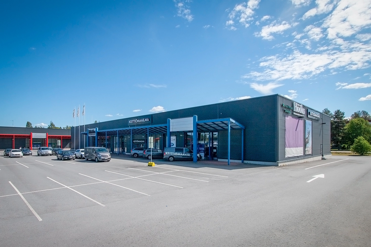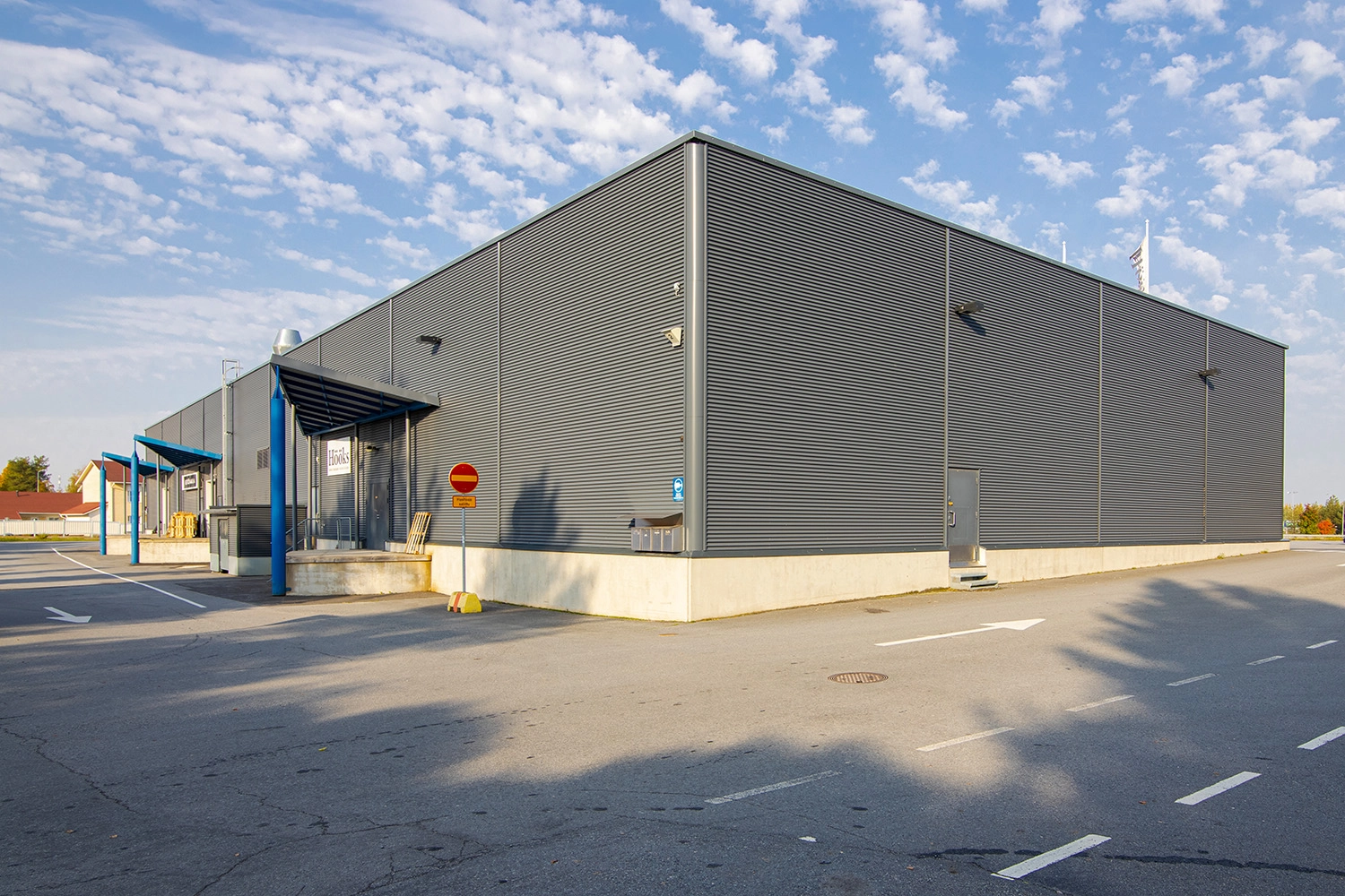 Saapumista mukavoittaa selkeästi suunniteltu ja hyvin ylläpidetty pysäköintialue.