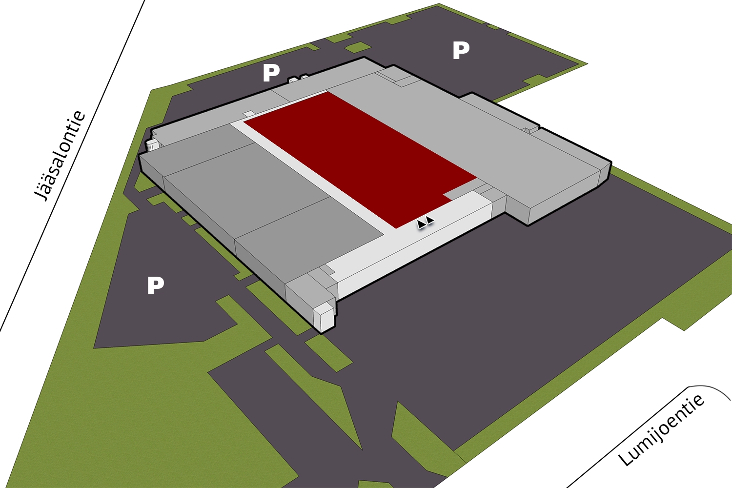 Kohde on rakennettu aikanaan Nokialle, ja vuosien varrella tiloissa on toiminut mm. HalpaHalli.