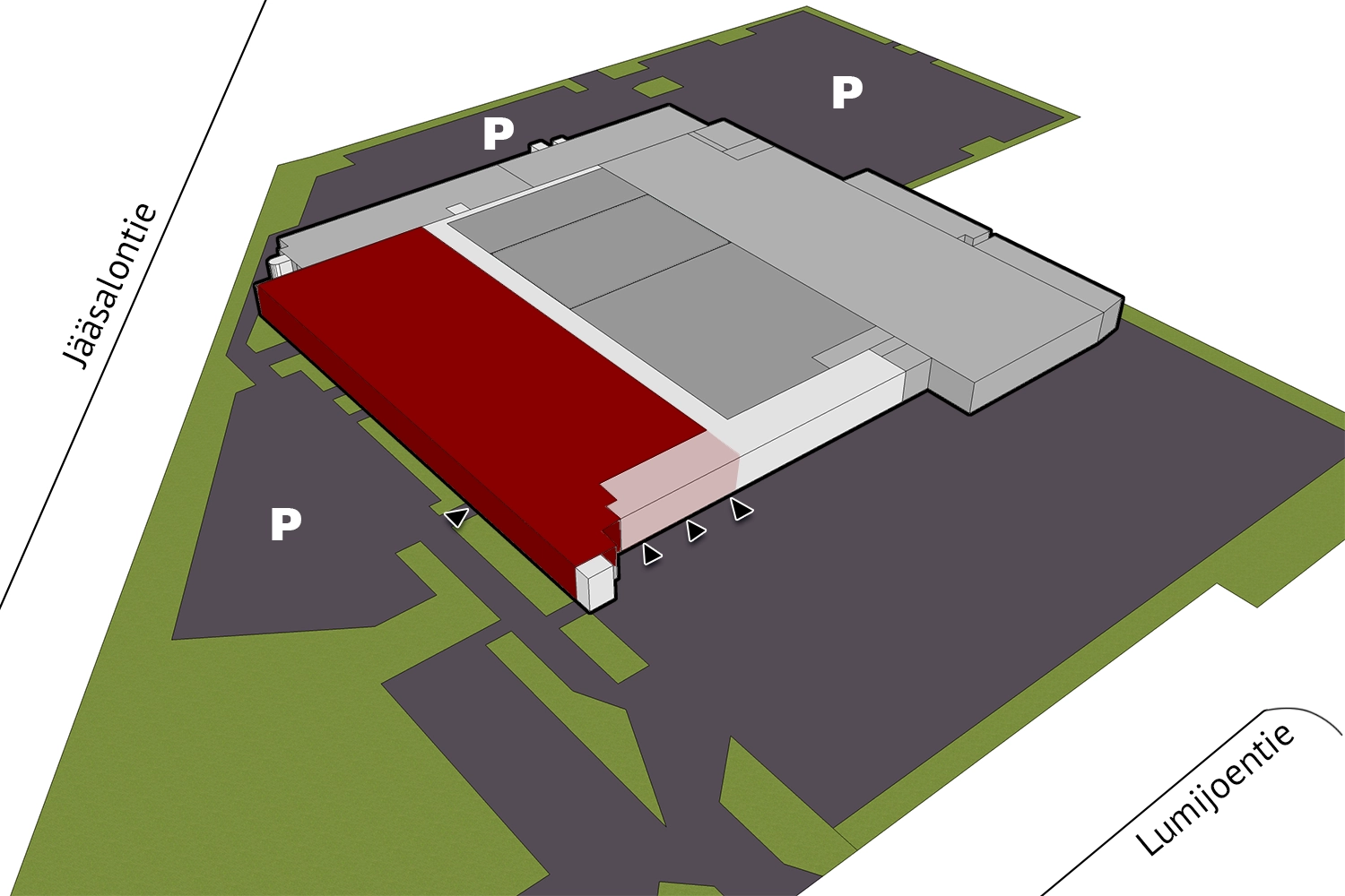 Liiketila 1979.5 m² Liiketila 1375 m² Tuotanto-/työtila 4857.5 m² Tuotanto-/työtila 4392.5 m² Liiketila 2147 m² Liiketila 2144 m² Liiketila 1636 m² Toimisto 2204.5 m² Varasto 837.5 m²